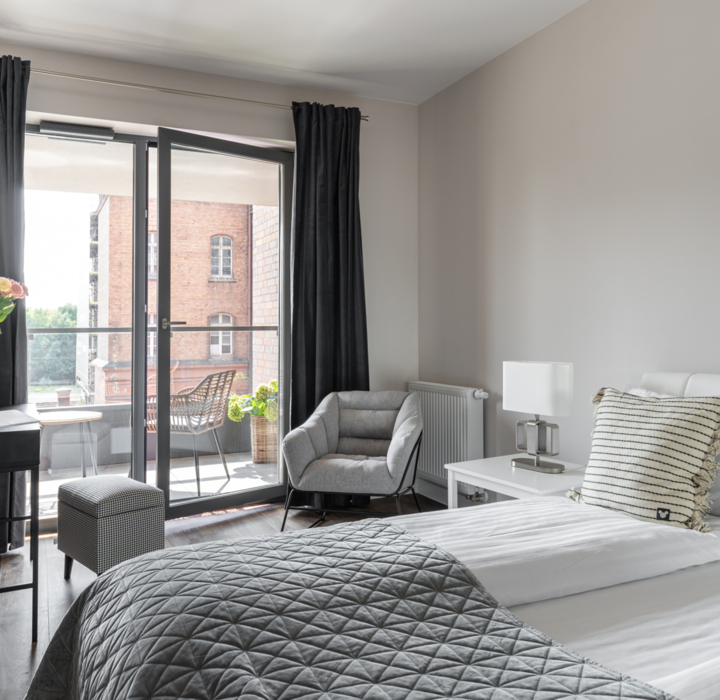 Wyobraź sobie poranek z filiżanką aromatycznej kawy na prywatnym balkonie, gdy pierwsze promienie słońca muskają ceglany mur kamienic. Apartament Neapol II to połączenie elegancji, komfortu i wyjątkowego klimatu - miejsce, w którym odpoczynek nabiera nowego znaczenia.