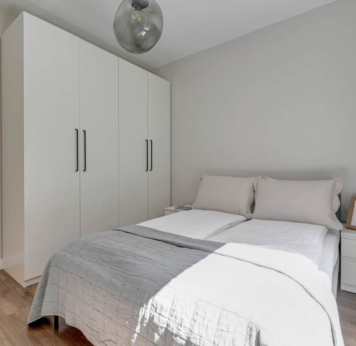 - jasną sypialnię z dużym łóżkiem małżeńskim,