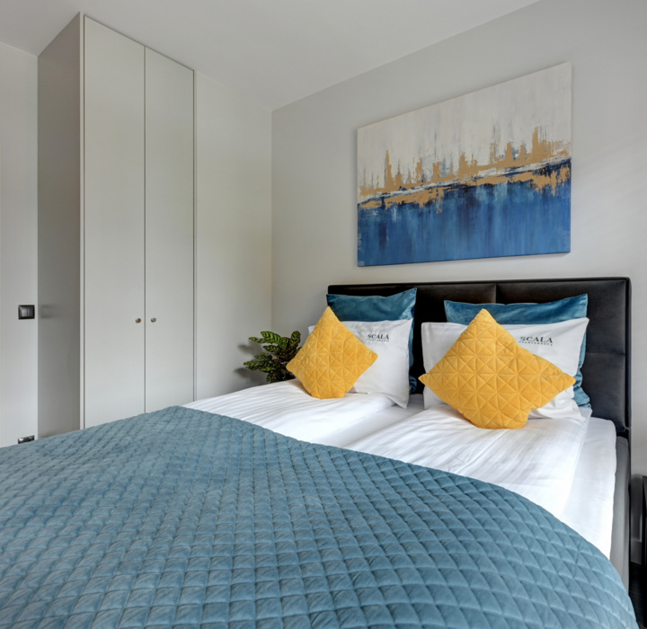 - Sypialnia z dużym łóżkiem małżeńskim,