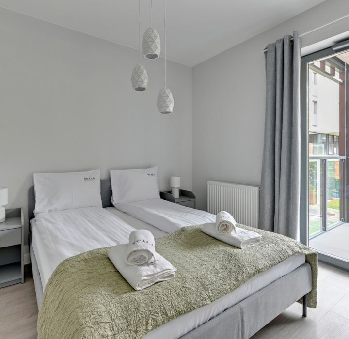 Apartament znajduje się na nowoczesnym osiedlu SCALA przy ul. Łąkowej 60 - kilka kroków od Fontanny Neptuna, butików z bursztynem i nastrojowych kawiarni. To miejsce, idealne na Na weekendowy wypad , które pozwala połączyć magię miasta z chwilami wytchnienia w spokojnym otoczeniu.