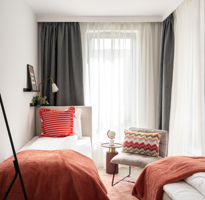 Jasne wnętrza, odważne kolory i nowoczesny design - apartament Jazzy II to przestrzeń, w której po prostu dobrze się przebywa.
