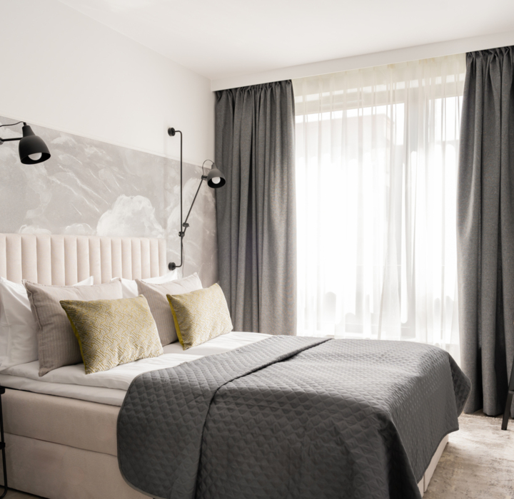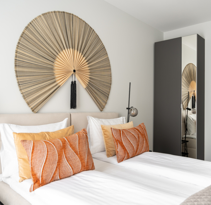 Wnętrze zachwyca energią i lekkością - stonowane szarości przełamane ciepłymi akcentami, miękkie tkaniny, artystyczne dodatki i designerskie detale tworzą wyjątkowy klimat, w którym relaks przychodzi naturalnie.