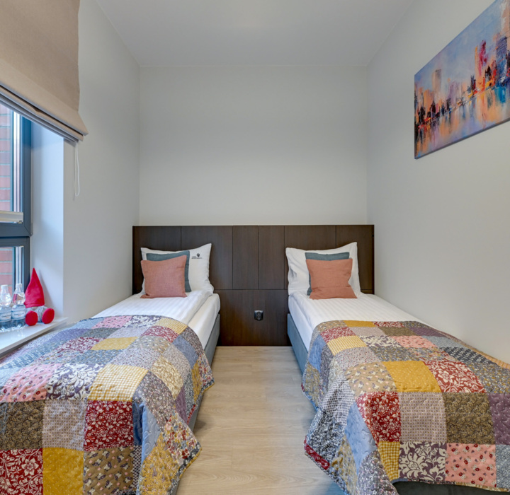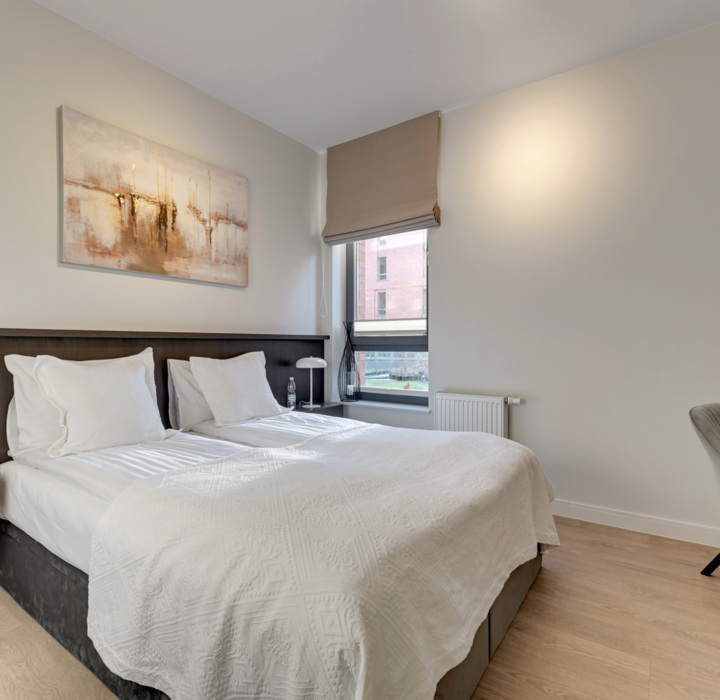 Wnętrze łączy prostotę z nowoczesnością – stonowane barwy, ciepłe oświetlenie i naturalne materiały tworzą przestrzeń, w której od razu poczujesz się swobodnie. To miejsce, które sprzyja wspólnemu wypoczynkowi i spokojnym chwilom po dniu pełnym miejskich atrakcji.