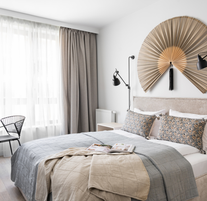 To wnętrze, w którym można naprawdę odpocząć - wypełnione naturalnym światłem, miękkimi tkaninami i subtelną kolorystyką, tworzącą aurę błogiego relaksu.