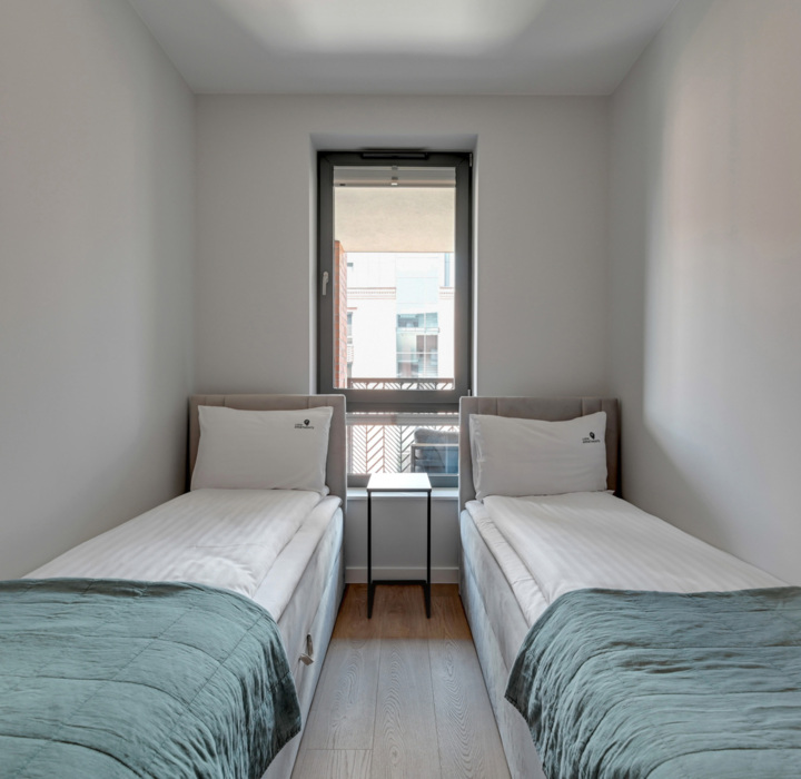 - dwie sypialnie - główna z łóżkiem małżeńskim i druga z dwoma pojedynczymi łóżkami,