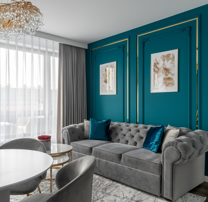 Wyobraź sobie wieczór w apartamencie, gdzie światło kryształowego żyrandola odbija się w złotych detalach, a miękkie tkaniny zapraszają do odpoczynku. To właśnie Glow - przestrzeń stworzona z myślą o chwilach we dwoje, w której luksus łączy się z ciepłem i nastrojem.