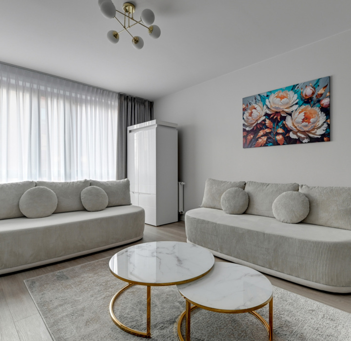 przestronny salon z dwiema rozkładanymi sofami - idealny do odpoczynku i wspólnych chwil,