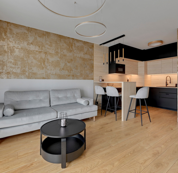 Wyjątkowy apartament, w którym nowoczesny minimalizm spotyka się z przytulnością. Jasne wnętrze z elementami drewna i kontrastową czernią tworzy przestrzeń, w której można naprawdę odpocząć i cieszyć się atmosferą miasta. To miejsce, które zapewnia komfort, design i świetną lokalizację - idealne dla pobytu w duecie lub solo.