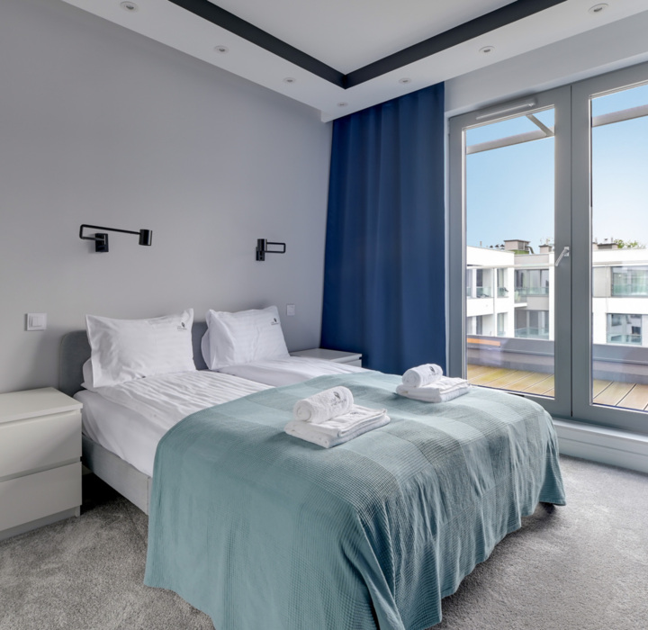 - Idealny dla rodzin – przestronny układ z dwiema sypialniami i salonem pomieści swobodnie do 5 osób.