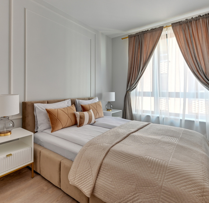Przestronny salon z wygodną sofą i designerskimi dodatkami sprzyja relaksowi przy kieliszku wina, a w pełni wyposażona kuchnia pozwala celebrować wspólne chwile przy kawie. Sypialnia z miękką pościelą i nastrojowym oświetleniem to oaza spokoju, w której odnajdziesz równowagę po dniu pełnym wrażeń.