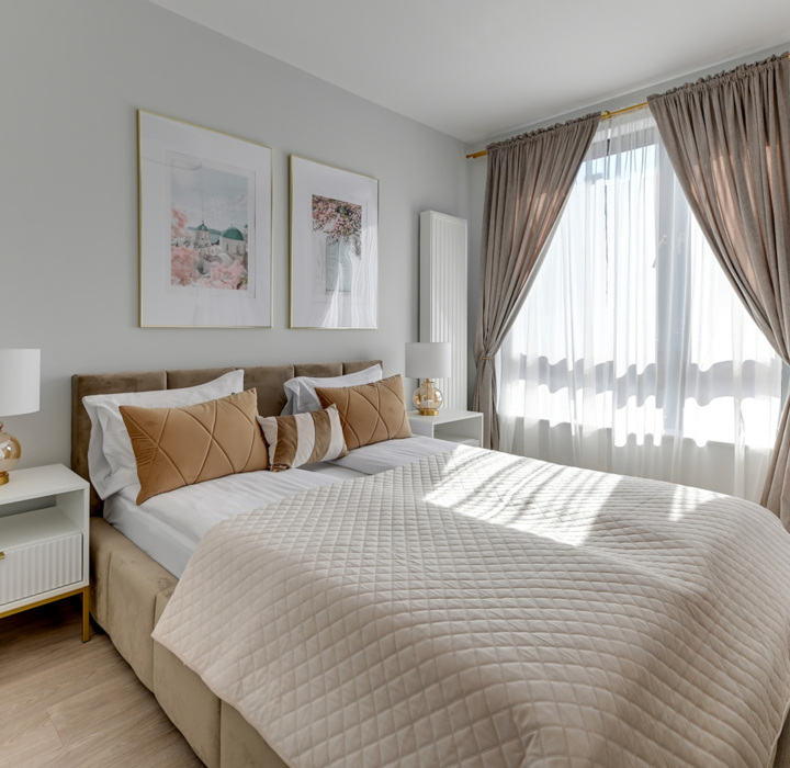 - sypialnia w tonacjach beżu i różu, idealna do wyciszenia,