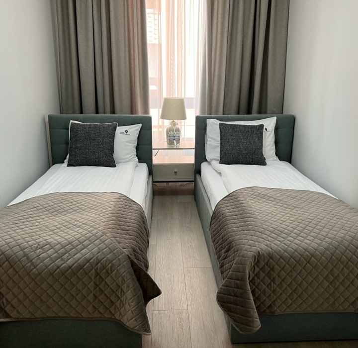 To Apartament Idealny dla rodzin, par i przyjaciół, którzy szukają połączenia klasyki z nowoczesnością. Jasne wnętrza w odcieniach beżu i szarości wprowadzają spokój, a miękkie tkaniny i subtelne dodatki tworzą klimat prawdziwego relaksu.