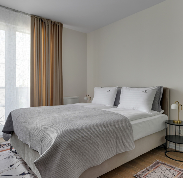 - Miękkie, szerokie łóżko - stworzone z myślą o pełnym komforcie dla dwojga,