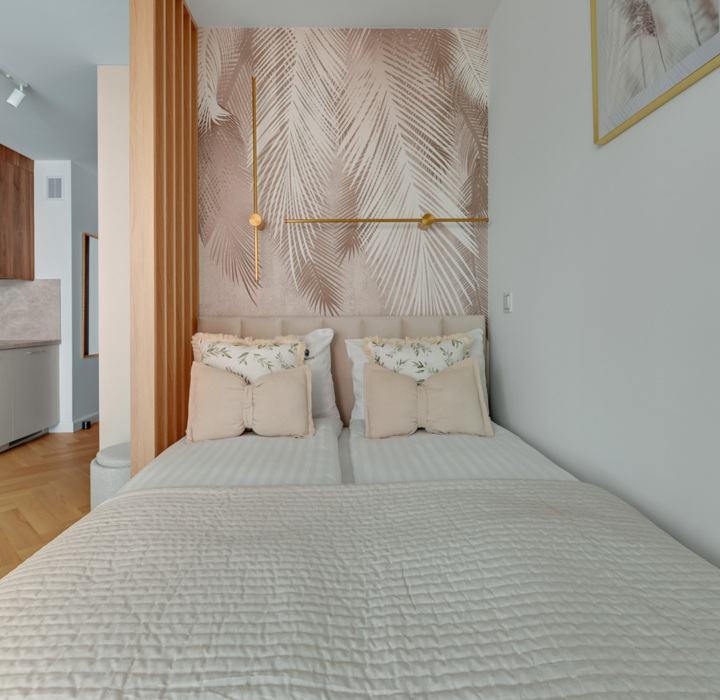 Jasne wnętrze, naturalne materiały i subtelne złote detale tak zaczyna się Twój pobyt w Portovo 170.