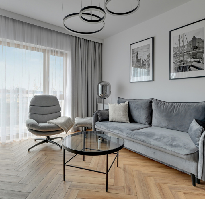 Wyobraź sobie poranek z filiżanką kawy na balkonie, gdy promienie słońca odbijają się w tafli Motławy. Wokół cisza, a jednocześnie tylko kilka kroków dzieli Cię od serca Starego Miasta. To przestrzeń, która łączy nowoczesny design z wyjątkową lokalizacją.