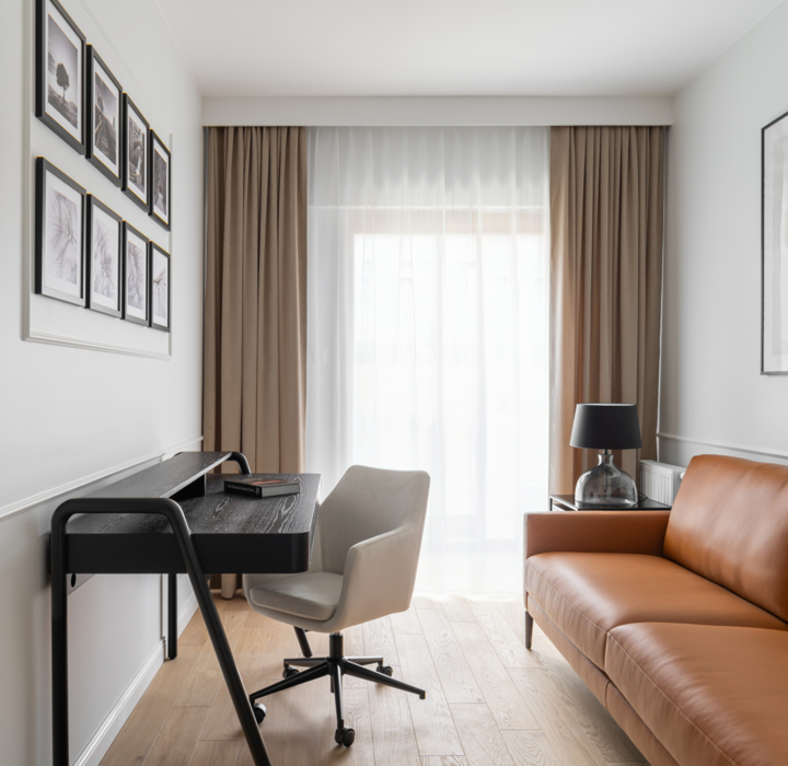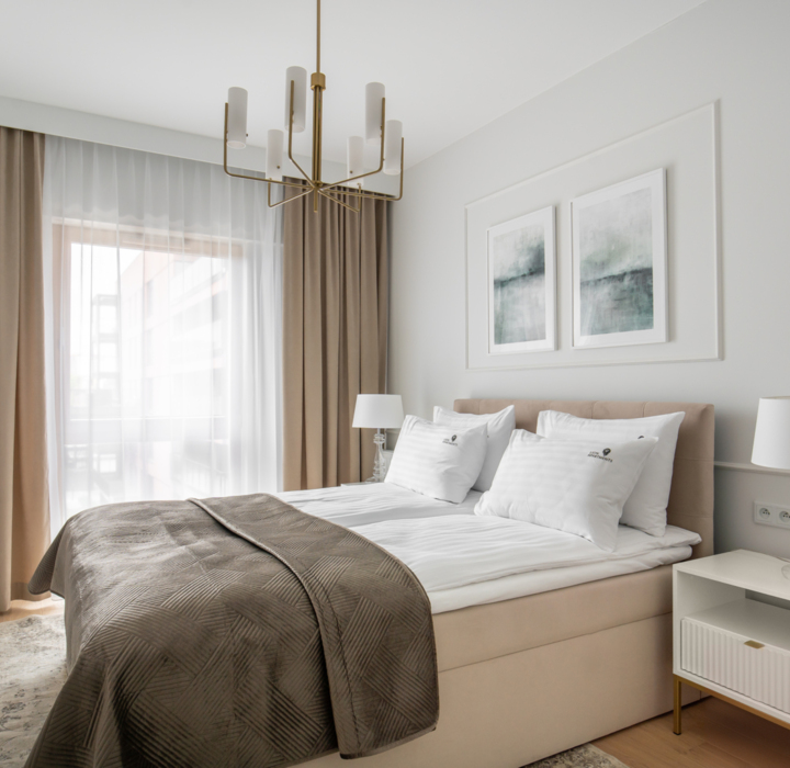 Wyobraź sobie poranek z aromatyczną kawą na tarasie, z którego rozciąga się widok na nowoczesne bulwary i dachy Gdańska. Jasne, eleganckie wnętrza, subtelne złote detale i miękkie tkaniny zapewniają Wysoki standard jak w 5-gwiazdkowym hotelu - z nutą domowego ciepła.
