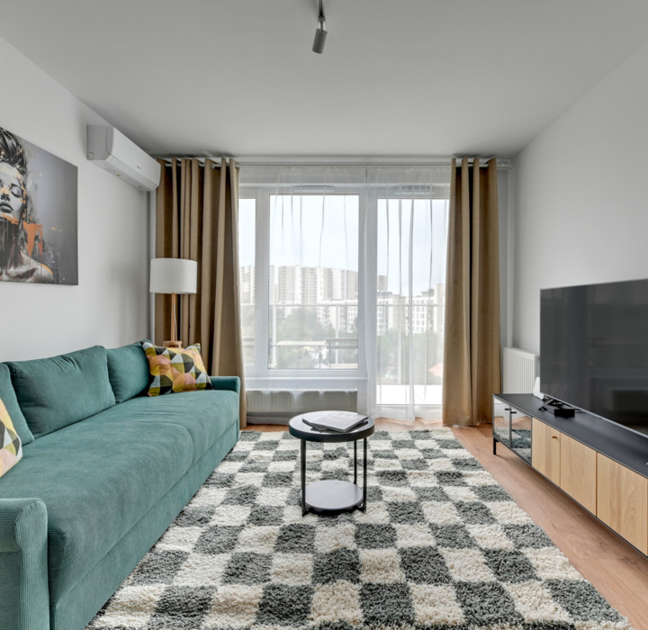 - Prywatny balkon z widokiem na zieleń – idealny na poranną kawę lub wieczorny relaks,