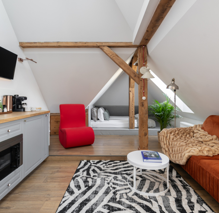 Apartament mieści się na 3. piętrze zabytkowej kamienicy – bez windy, co dodaje mu jeszcze więcej klimatu i sprawia, że pobyt staje się wyjątkowym doświadczeniem.