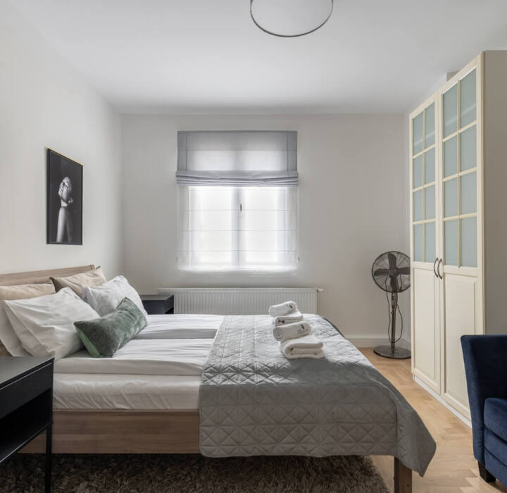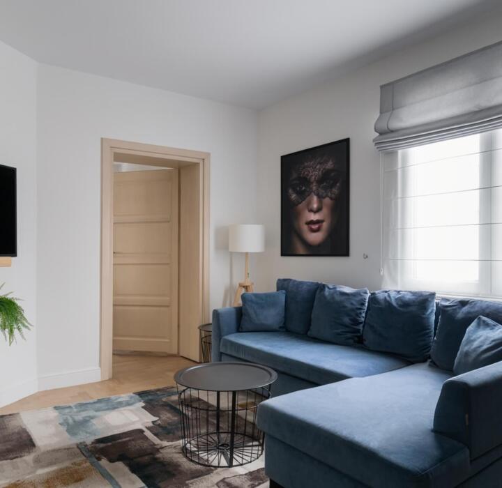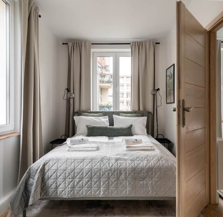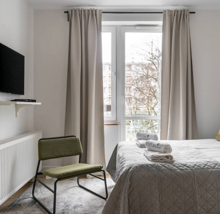 Wnętrza są świeżo po remoncie, łączą nowoczesne udogodnienia z domowym ciepłem i subtelną artystyczną energią. Apartament może pomieścić do 8 osób, zapewniając wygodę zarówno na dłuższy pobyt jak i weekendowy wyjazd.