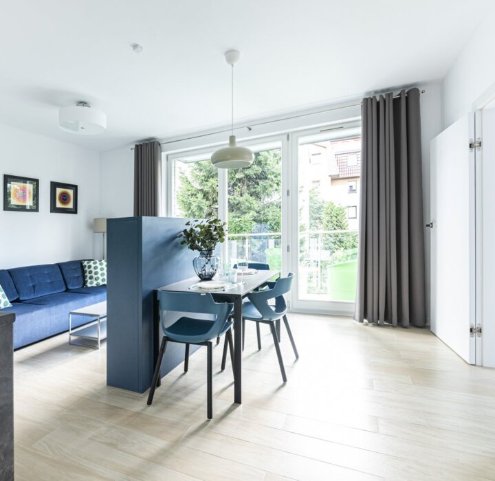 Nowoczesny apartament z ogrzewaniem podłogowym na pierwszym piętrze z windą, idealny dla 4 osób, to doskonały wybór na weekendowy wypad dla tych, którzy cenią wygodę i świetną lokalizację. Goście mają do dyspozycji salon z balkonem i rozkładaną sofą, kącik jadalny, wyposażony aneks kuchenny, jasną sypialnię z dużym łóżkiem oraz przestronną łazienkę z prysznicem. Uroczy balkon sprzyja chwilom relaksu przy kawie i książce.