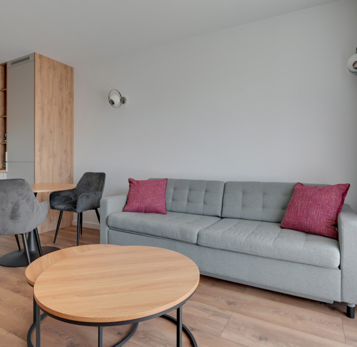 Na 40 m² znajdziesz sypialnię z łóżkiem małżeńskim, salon z rozkładaną sofą, aneks kuchenny z wyspą, łazienkę z prysznicem oraz umeblowany balkon – zaprojektowany z balkonem który doskonale sprawdzi się na poranną kawę. Apartament mieści się na 2. piętrze nowoczesnego budynku z windą - w pobliżu las, sklepy.