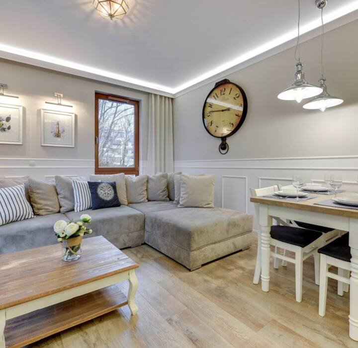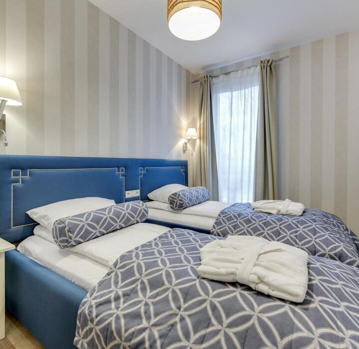 Aquarius Deluxe is a unique apartment in a quiet area of Sopot. Furnished to the highest standard, it impresses with details and marine accents that highlight the quality of seaside relaxation. It is an apartment ideal for families accommodating up to 6 people, whose stylish interior perfectly harmonizes with the green surroundings of the intimate estate.