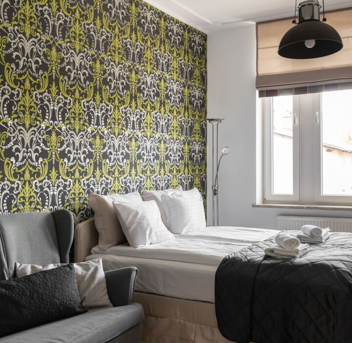 The apartment is located on the 2nd floor of a stylish, historic tenement house – the absence of an elevator is compensated by the atmosphere of the place: high ceilings, stucco, wooden floors, and original interior details that perfectly complement it.