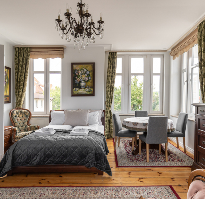 This is an elegant apartment in a historic tenement house in the heart of Sopot, combining style and comfort in one of the most desirable locations in the Tri-City area. On 137 m² there are 3 bedrooms, including one with a balcony, a living room with a relaxation zone, a bathroom with a bathtub, and a separate kitchen.